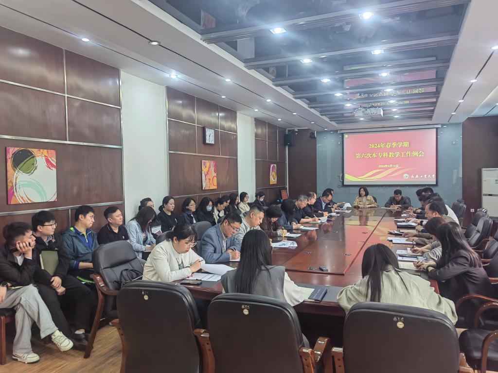 2024年5月14日,学校在办公楼二楼会议室召开2024年春季学期第五次本专科教学工作例会。各教学单位教学院长、系(部)主任、教学秘书、教务处、教学质量监控与评价中心、教师教学发展中心工作人员参加了会议。