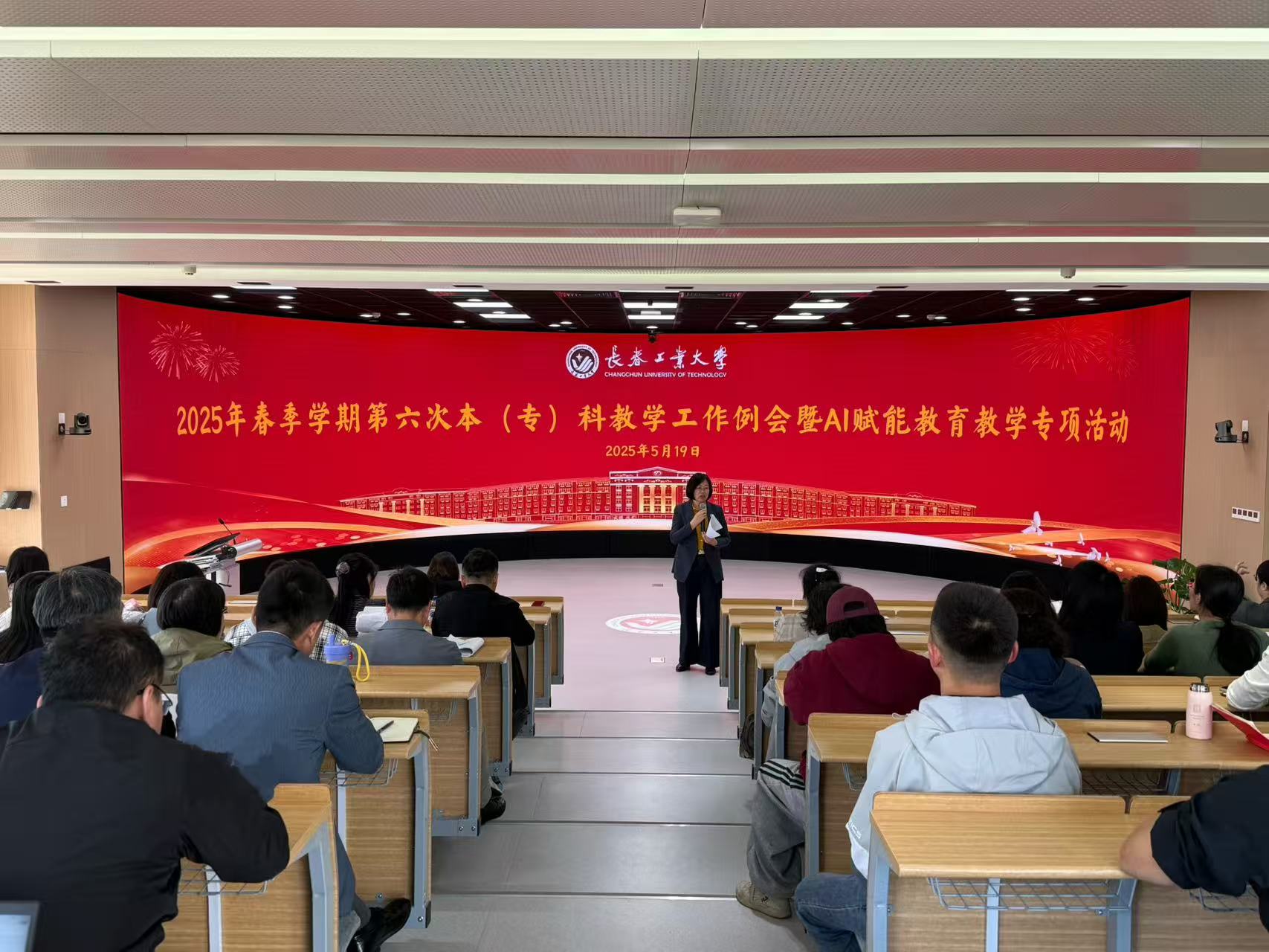 2025年5月19日,学校在北湖东区美育全景教学空间召开2025年春季学期第六次本专科教学工作例会暨AI赋能教育教学专项活动。各教学单位教学院长(主任)、教学秘书、专业负责人,教务处、教学质量监控与评价中心、教师教学发展中心全体工作人员参加会议。会议由教务处处长冉旭主持。
