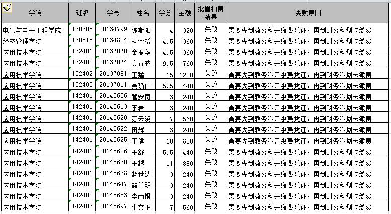 2015-2016学年第二学期重修扣费已经完成,有部分同学扣费失败。扣费失败的名单,可在教务在线-通知通告中附件下载,扣费失败的同学注意以下几点: