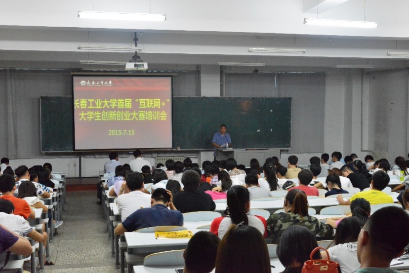为积极有效推进“互联网+”大学生创新创业大赛顺利进行,学校于7月15日、7月16日,在林园校区教学图书楼401室、南湖校区综合楼三楼报告厅分别召开了“互联网+”大学生创新创业大赛培训会。会议由教务处副处长曲永军主持,创业教育学院王涛副院长和大学生科技园管理办公室孟庆新主任为本次培训会的主讲人。
